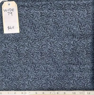 An all over leaf design is in light navy on a deeper navy background