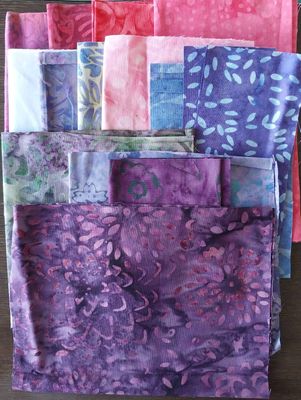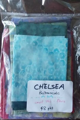 Coloured batik fabric in a pack of small pieces suitable for applique for the Chelsea Garden Blocks. Each pack differs and may not be as shown in the images, but will be similar shades.