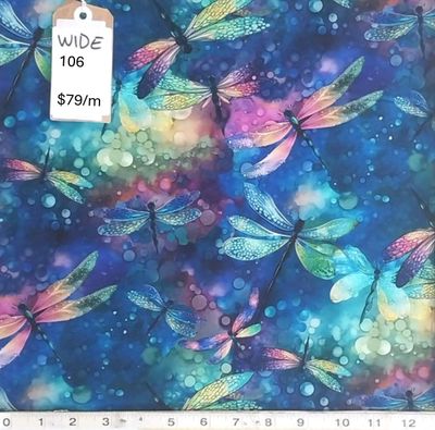 Just look at this! The background is inky dots inshades of rich cobalt and greens with hints of cerise. The dragonflies are frpm about 10 cm (4 Inches) across and smaller. Shades of sky, teals, pinks … it's amazing!